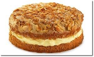 In dieser Zeit die übrige Butter, Zucker, Honig und Sahne in einem Topf zum Schmelzen bringen. Die Mandeln dazugeben und noch einmal aufkochen lassen. Nach 20 Min. Backzeit die Mandelmasse auf dem Kuchen verteilen und nochmals 10 - 15 Min. backen. Den Kuchen auskühlen lassen.